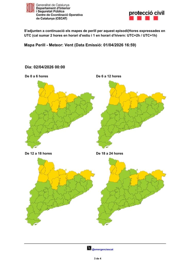 COMUNICAT D’ACTUALITZACIÓ DE LA SITUACIÓ DE PREALERTA DEL VENTCAT