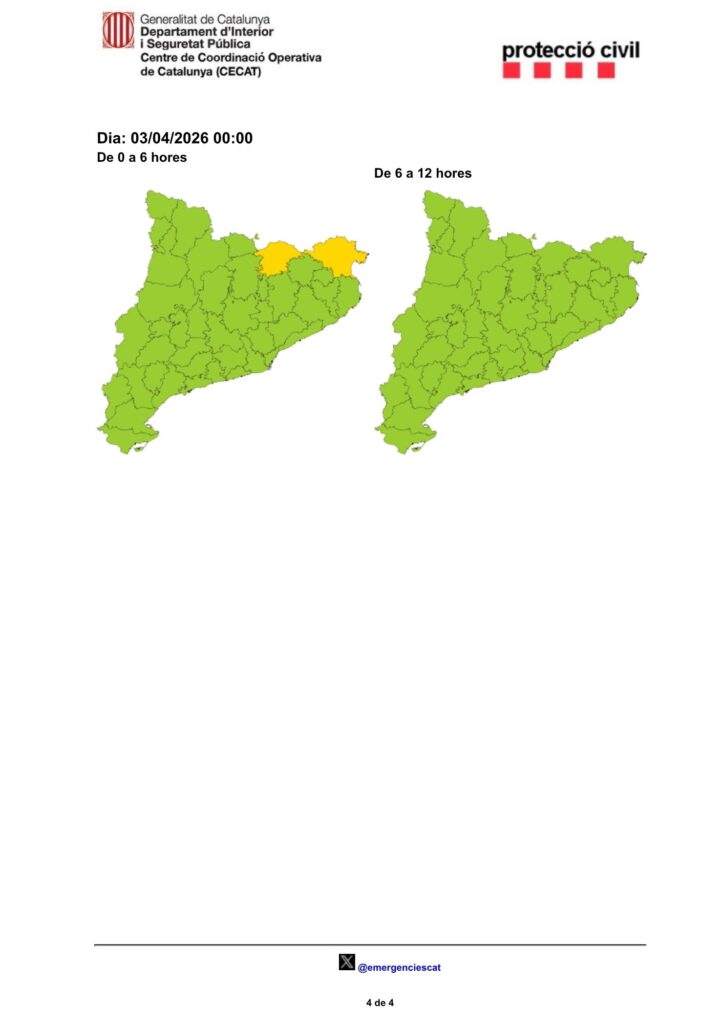 Cal recordar que la situació de Prealerta no comporta l’activació de cap pla d’emergència.